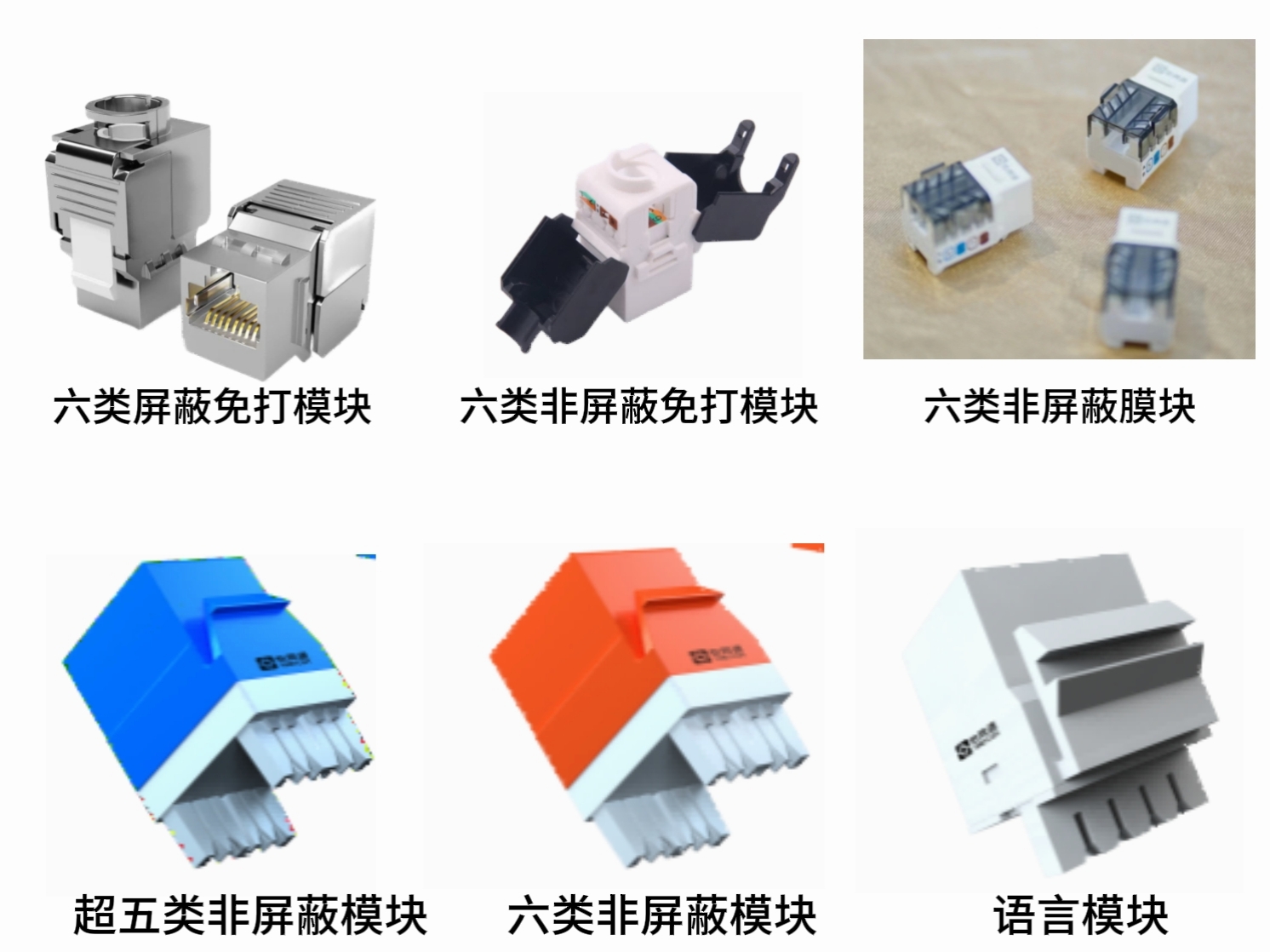 模块是衔接网线与面板、配线架的核心转接部件,主要作用是将网线芯线规范端接,再通过模块与水晶头、设备接口配合,实现稳定的网络信号传输,常见于家庭、办公室、数据中心的布线系统中。1、产品特性/使用温度:-20℃-75℃;/支持高密度安装通用线序标准,支持T568A或T568B端接线序。/用于室内水平工作区布线六类非屏蔽系统